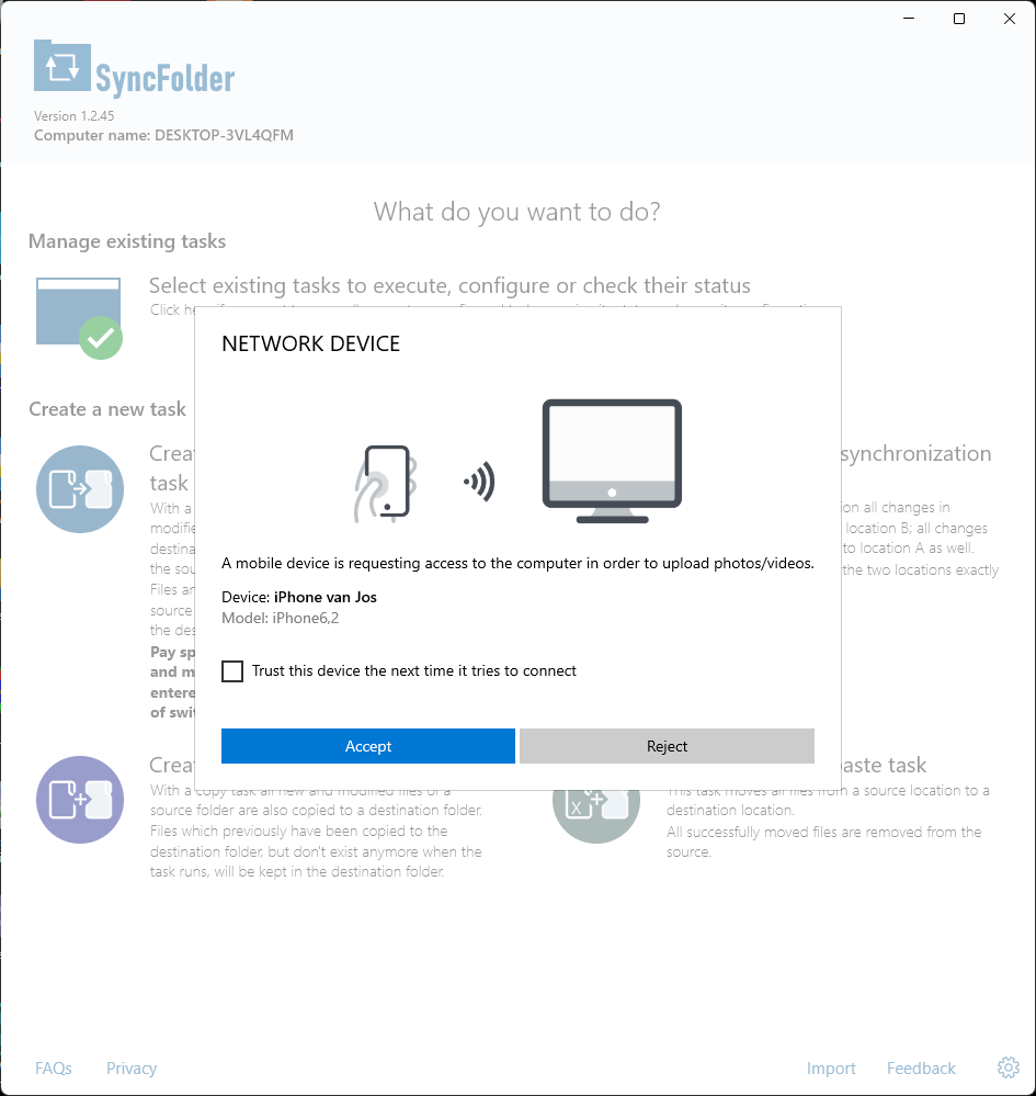 A super simple app to synchronize folders on Windows 10/11 and import photos and videos.