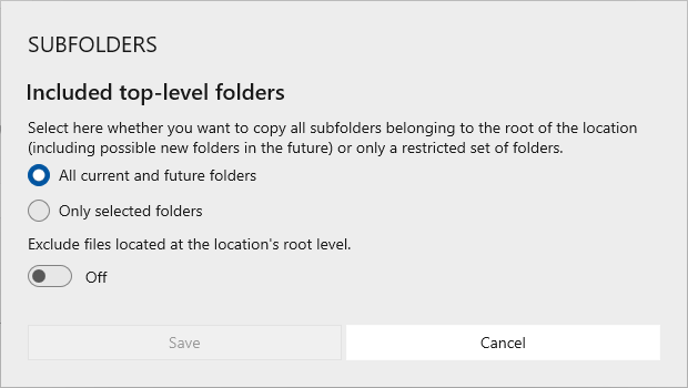 will open a dialog window where you can indicate if you want all subfolders to be handled or only a selected number.