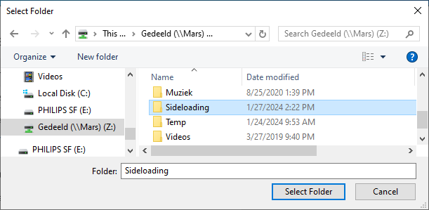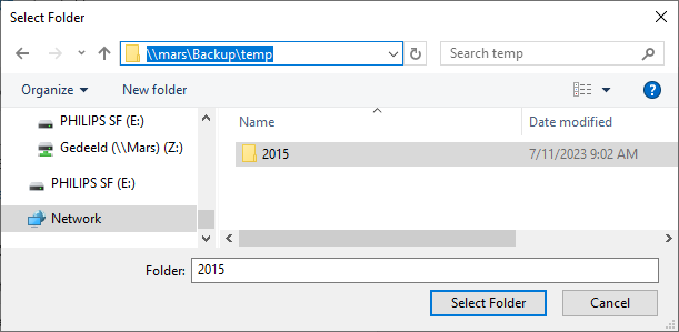 Assigning a shared folder on a network drive (NAS, WebDAV, ..)