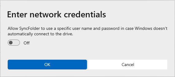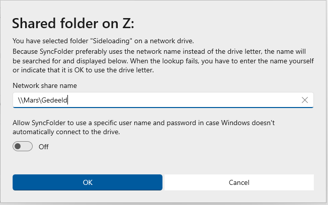 SyncFolder can however fail to connect to a shared folder on a network drive in case Windows doesn't automatically